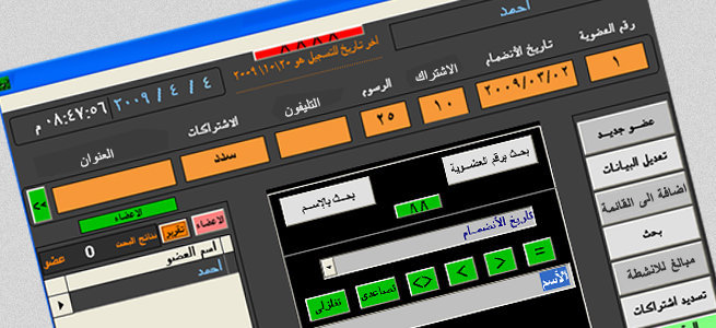 باستخدام هذا البرنامج يمكنك ادارة النقابة او الحزب او النادى الخاص بك بشكل احترافى واكثر كفاءة.. كما يمكنه ادارة اى نشاط قاءم على نفس الفكرة ايضا .. فهو يقوم باجراء عمليات البحث عن الاعضاء والاشتراكات واالنشاطات والرحلات والعديد من المهام التى تشملها المؤسسات السابقة بكل سهولة وبطريقة ديناميكة