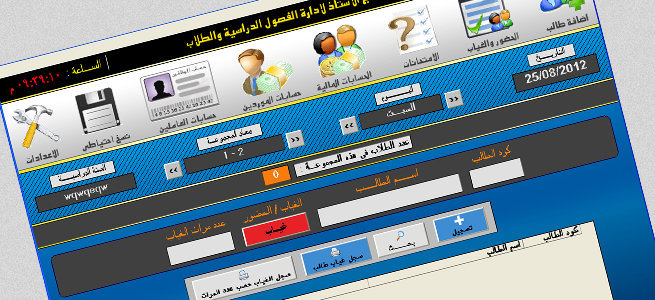 نقدم لكم البرنامج الوحيد الذى يقوم بادارة شئون المدرس وينظم المجموعات ومواعيدها وشئون الطلاب وحساب مرات غيابهم خلال الشهر وتسديدهم للمبالغ الشهرية والمذكرات وكذلك ادارة الموظفيين وحسابات الموردين وغيرها من المزايا الرائعة التى يحتاجها المدرس والتى تجعل ادارته لنشاطه فى غاية السهولة والدقة