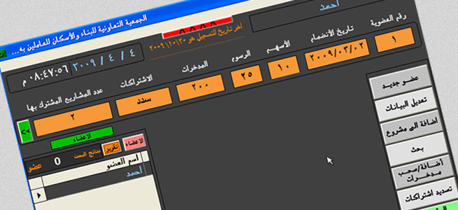 هذا البرنامج يقدم للعميل الفرصة لادارة الجمعية التعاونية بكل سهولة وذلك يشمل العمليات المالية والاعضاء والاشتراكات والمدخرات والمشاريع المختلفة .. كما يتيح مجموعة كبيرة من التقارير الجاهزة للطباعة وعمليات البحث السريعة .. والعديد من المزايا الرائعة